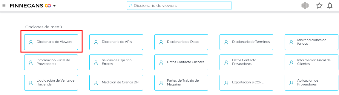 Para ello buscar “Diccionario de Viewers”: