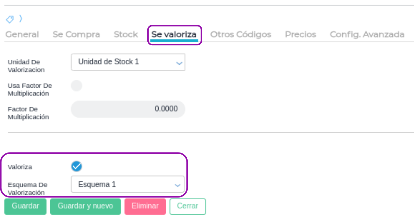 En la ruta del Menú - Gestión empresarial - Inventarios - Maestro: Productos se deberá configurar para cada producto un esquema de valorización, a fin de realizar la valorización del stock a una fecha determinada.