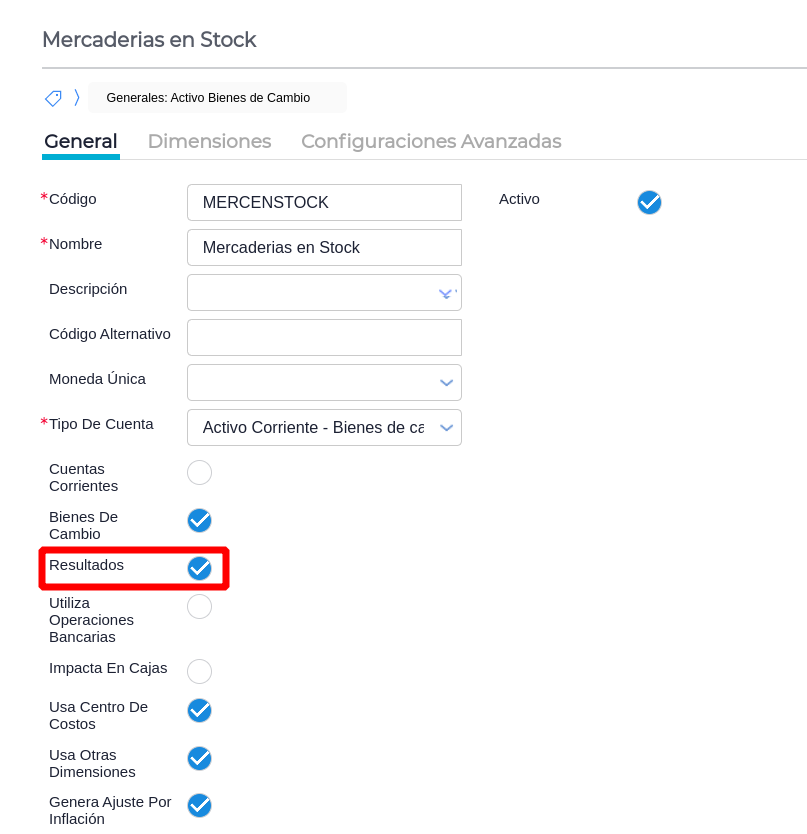 Para que se visualicen en este informe se debe chequear que la cuenta contable del producto en cuestión tenga el chek de Resultados.