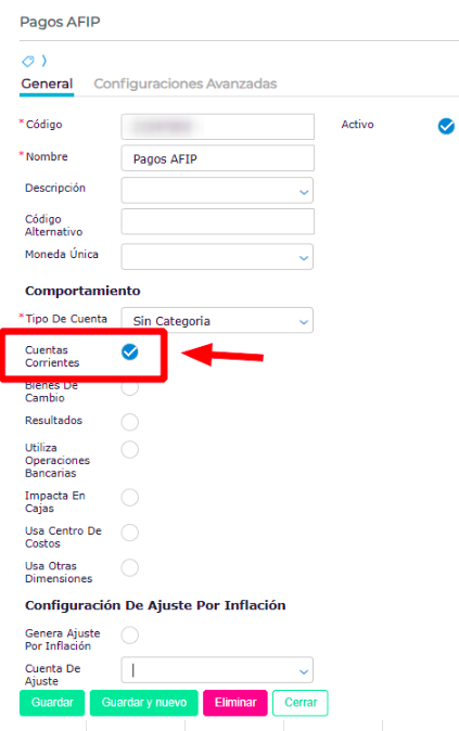 Agregar el check de “Cuentas Corrientes” y guardar.