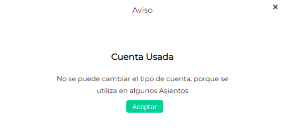Se visualiza un cartel de aviso al momento de querer cambiar el “Tipo de Cuenta” dentro de una cuenta.