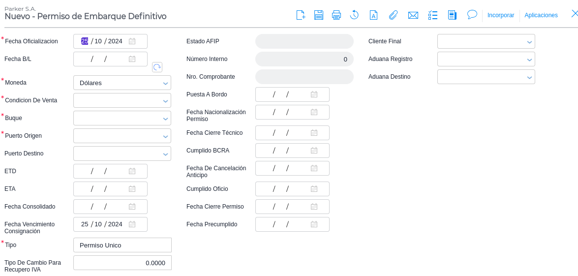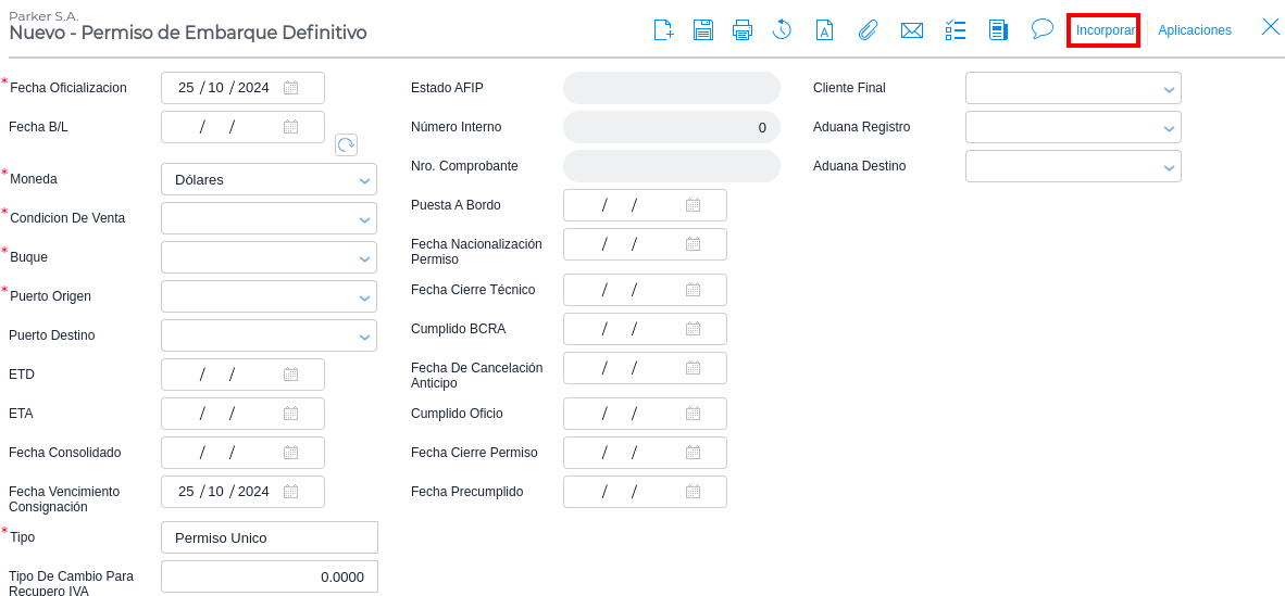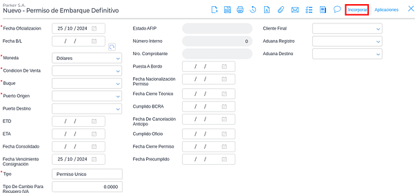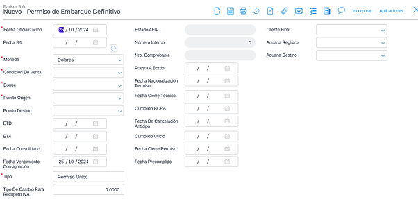 El alta del número de permiso de embarque asignado podrá realizarse en cualquier momento, este podrá ser grabado simplemente solo con datos básicos.