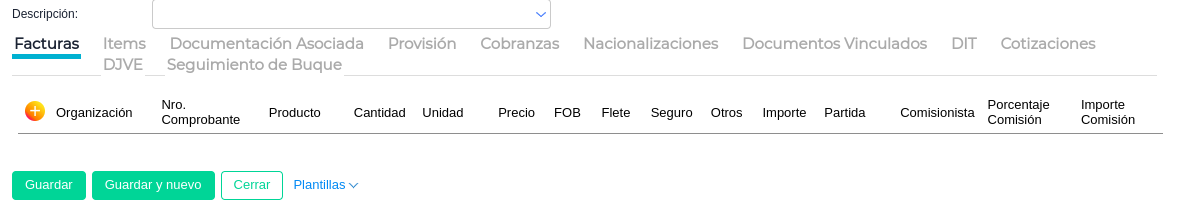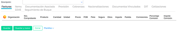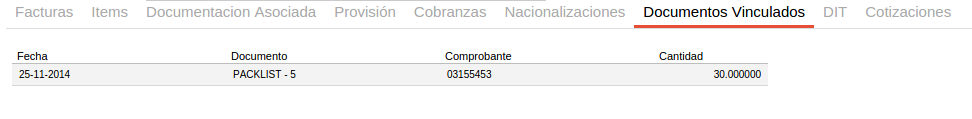 Este documento en el sistema centraliza toda la documentación de la exportación (Facturas,Cobranzas, DIT, Provisiones, etc) se puede ir completando a medida que se van obteniendo los datos.