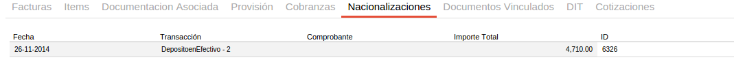 Muestra el detalle de las nacionalizaciones, la transacción generada y desde ahí podría cancelarse la misma.
