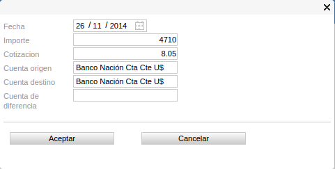 Nacionalización de divisas: desde el permiso puedo nacionalizar las divisas presionando el botón “Nacionalizar” se abre la siguiente pantalla