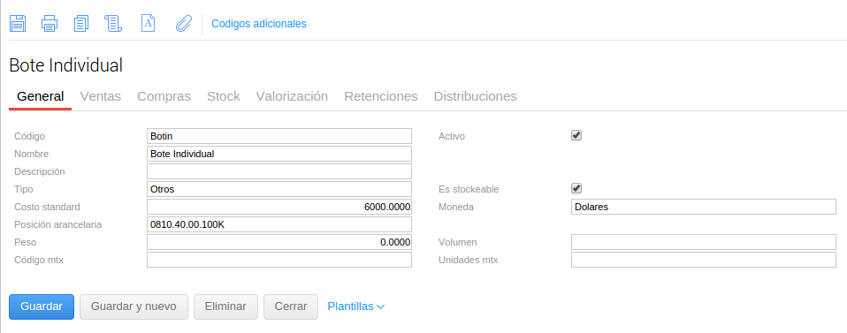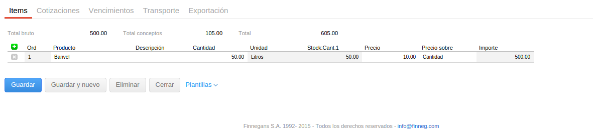 En la solapa Ítems se selecciona el producto solicitado, la cantidad del mismo y para la columna del precio hay dos opciones: