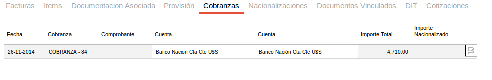 Muestra las cobranzas de las facturas relacionadas con el Permiso.