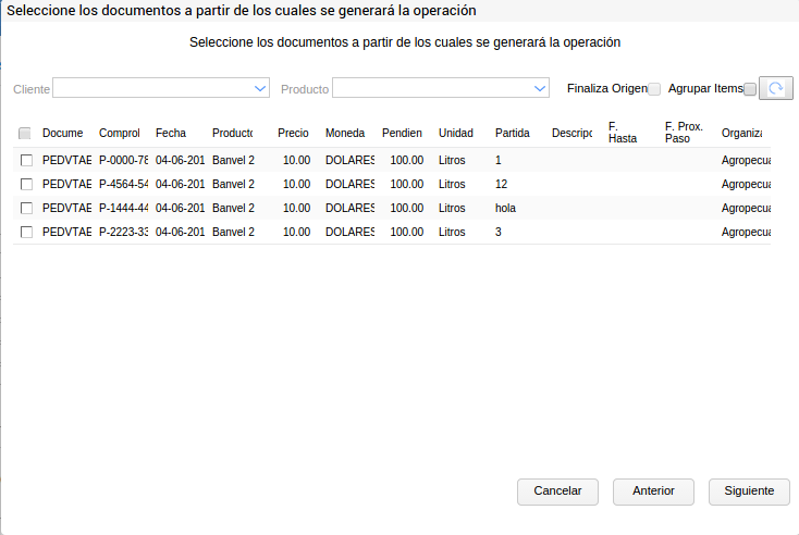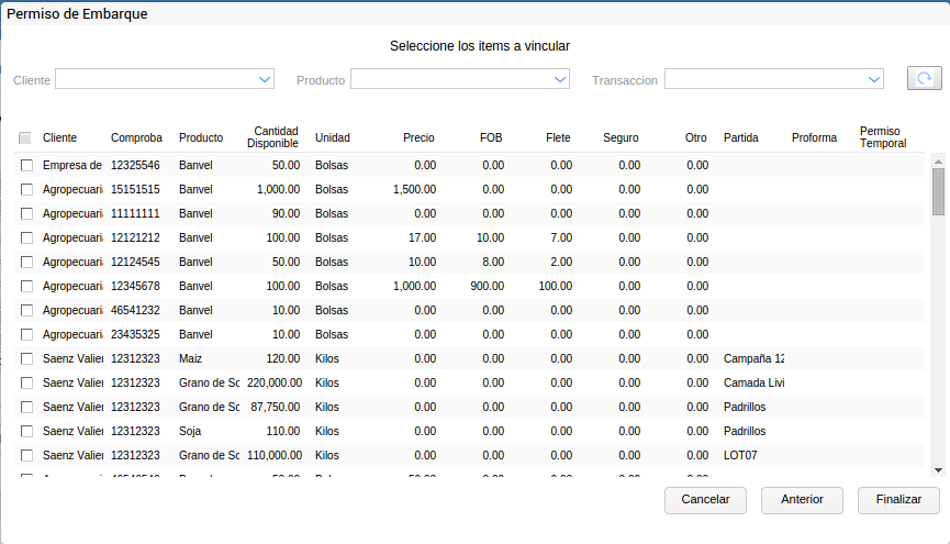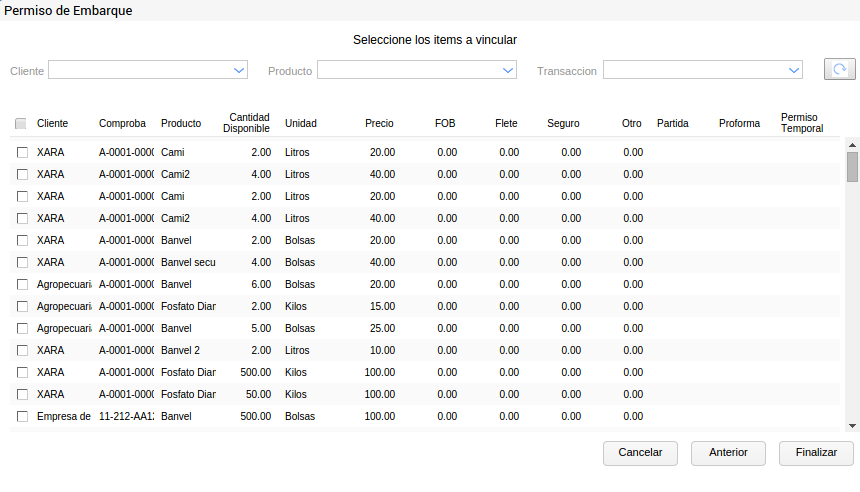 Se seleccionan las facturas que se quieren incorporar, el asistente mostrará una columna que indica de qué permiso provisorio proviene dicha factura (el permiso provisorio tiene asociados los despachos, y estos están aplicados a las facturas) y se finaliza: