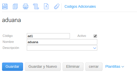 Aduana Registro: Es el campo “Aduana” que se encuentra el el permiso de embarque físico. Trae las aduanas cargadas en el maestro de aduanas.