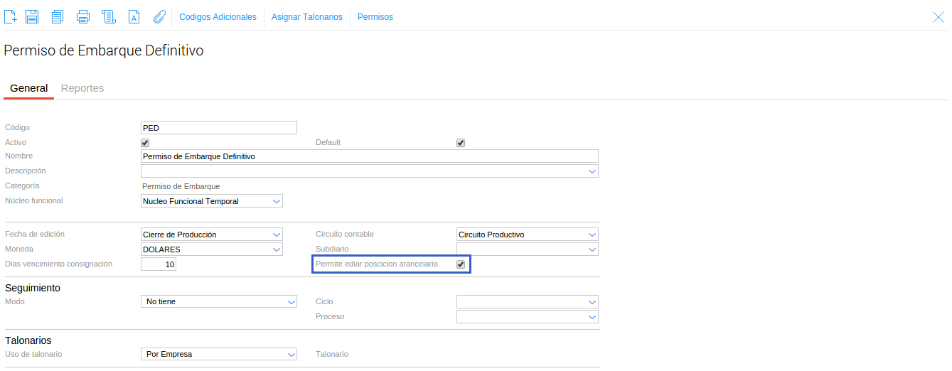 Para poder editar los importes calculados en la solapa Ítems del Permiso de Embarque, se debe activar una opción desde el Tipo de Documento.