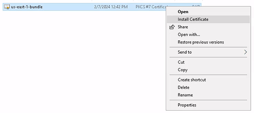 a. Click derecho sobre el certificado descargado, click izquierdo sobre Install Certificate (Instalar Certificado)