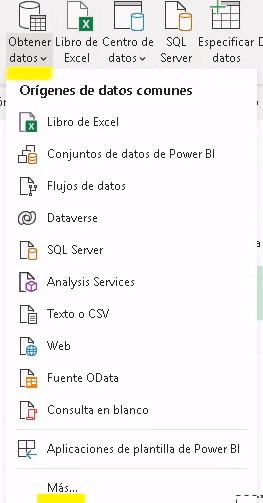 a. En PowerBi, presionar Obtener datos y luego en Más