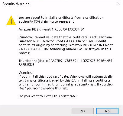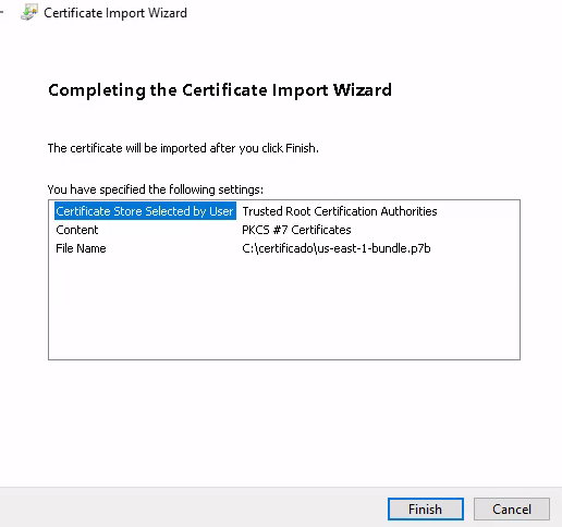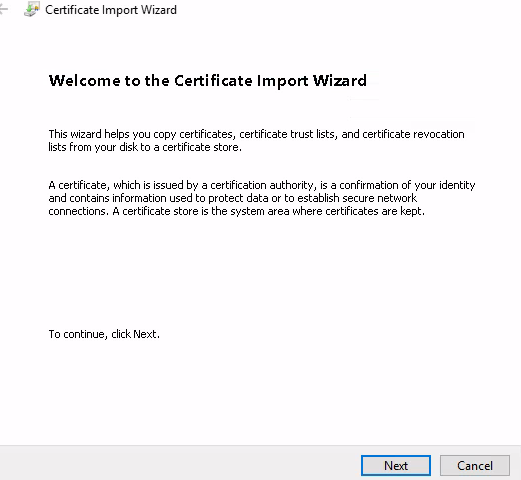 f. Aparecerá una advertencia de Windows, preguntando si está seguro de importar los certificados. Clickear Yes (Sí) en todas las advertencias que aparezcan.