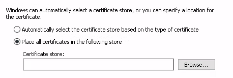 c. Tildar la segunda casilla: “Place all certificates in the following store”