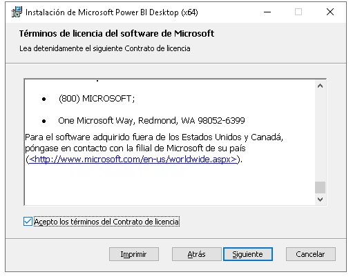 - Presione siguiente y acepte los términos del contrato de licencia para poder continuar: