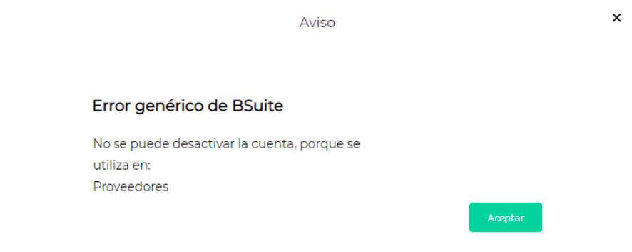 Al querer desactivar una cuenta el sistema le arroja el siguiente mensaje ;
