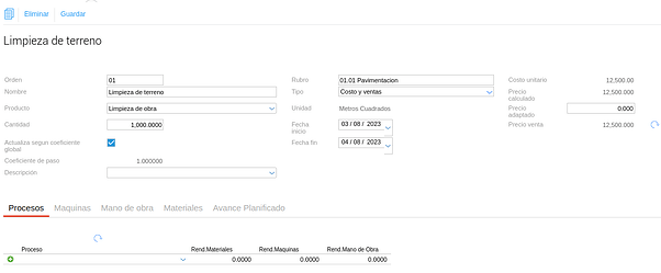 En base a la fórmula, se completan automáticamente las máquinas y la cantidad de horas/unidad requeridas.
