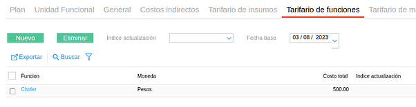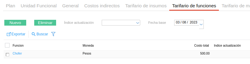 - Precio unitario: el indicado en el maestro de Costo por función.