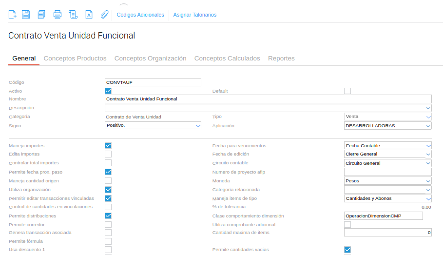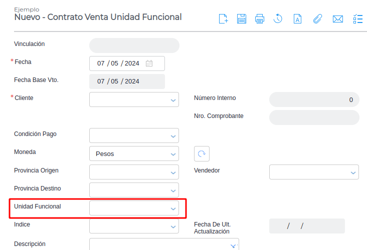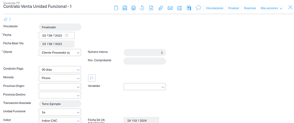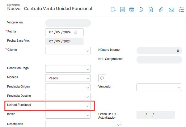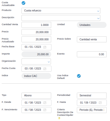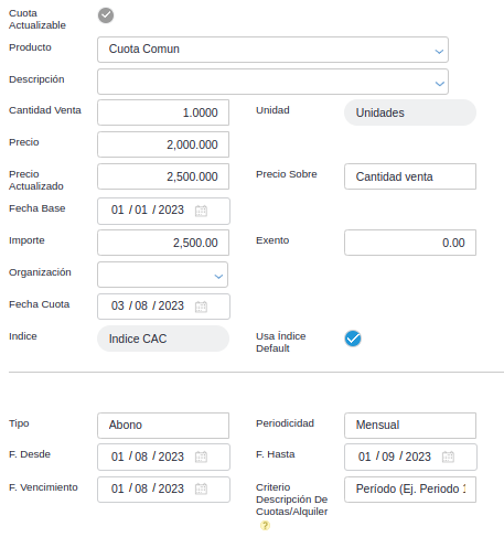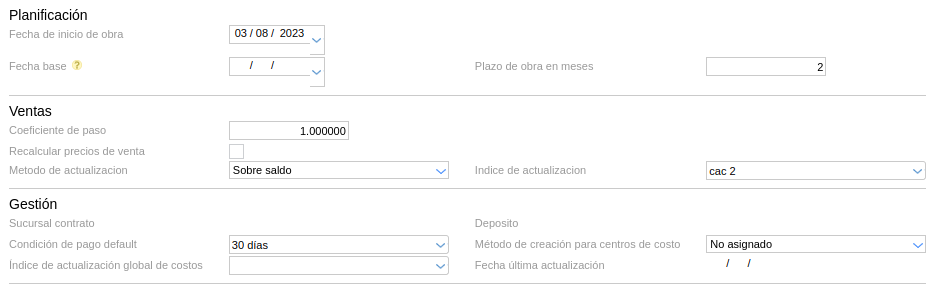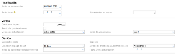 - Índice de actualización: define el índice que se utilizará para actualizar el valor de la venta de unidades funcionales.