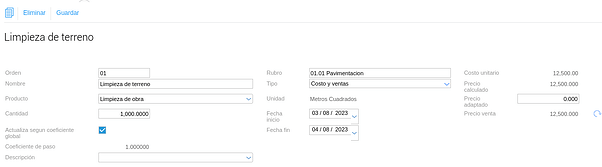 Una vez que todos los datos del ítem fueron cargados se hace clic en Guardar.