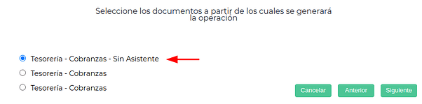 - Cuando se seleccionen una o más cuotas o facturas para realizar, las mismas se realizarán en la Moneda seleccionada en el asistente.