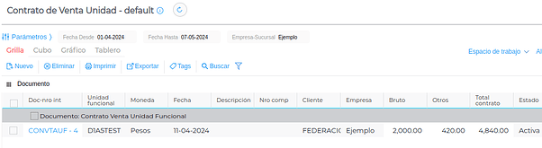 De forma análoga, el sistema te permite llevar la gestión de tus alquileres. De esta manera, podrás gestionar tanto la venta de las Unidades Funcionales como los alquileres de las mismas.