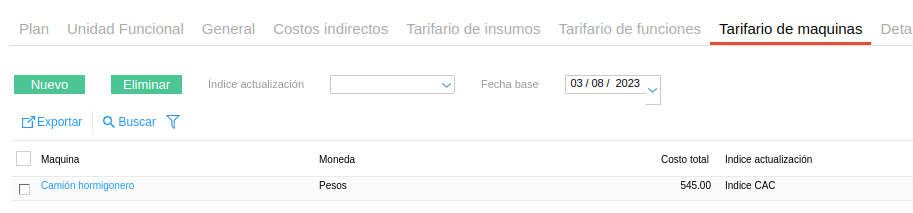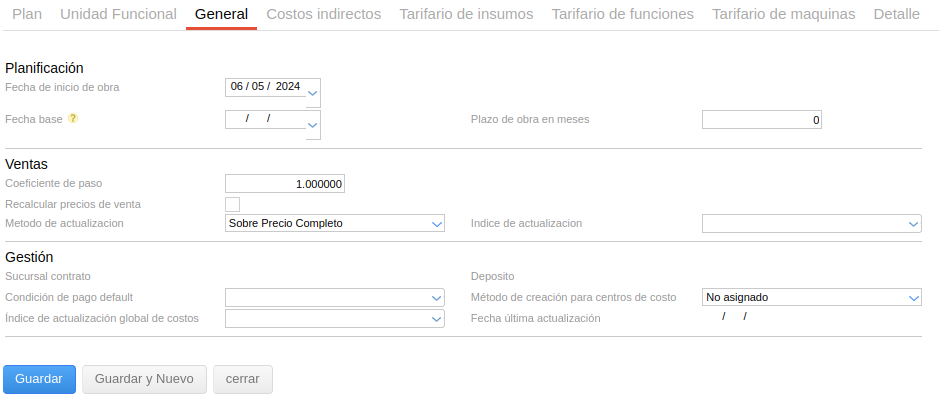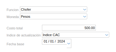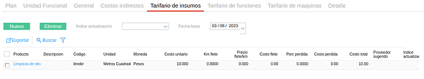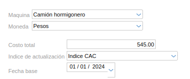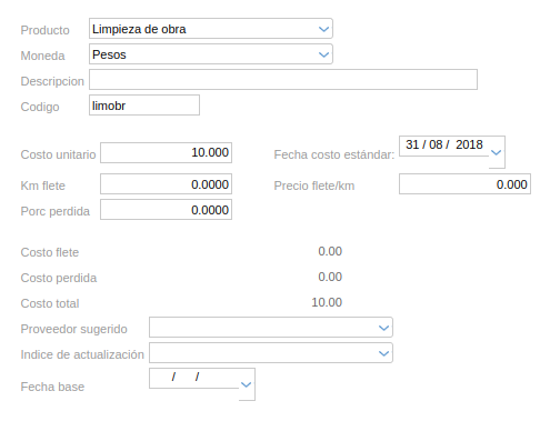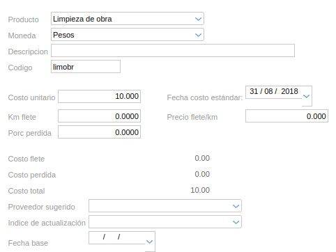 - Fecha base: para la actualización de costos por algún índice que se elija