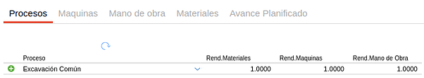En las solapas de recursos: Máquinas, Mano de obra y Materiales, se ven los recursos que serán consumidos para realizar el ítem. En principio se muestran los valores que fueron definidos en el proceso. Estos valores pueden editarse para definir un valor diferente considerando una circunstancia específica de la obra que se desea presupuestar.