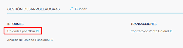 Se accede a los mismos desde Menú → Obra → Gestión desarrolladoras → Informes