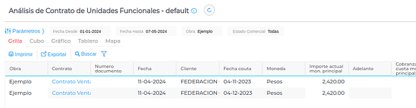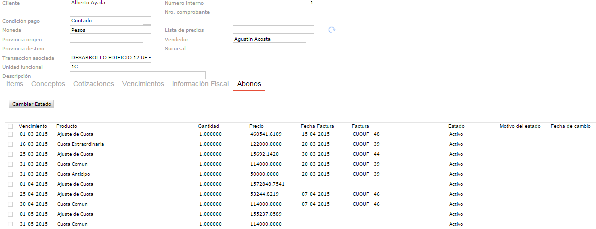 En la solapa “abonos” del contrato de venta de la unidad funcional, se podrán ver todas las cuotas facturadas.