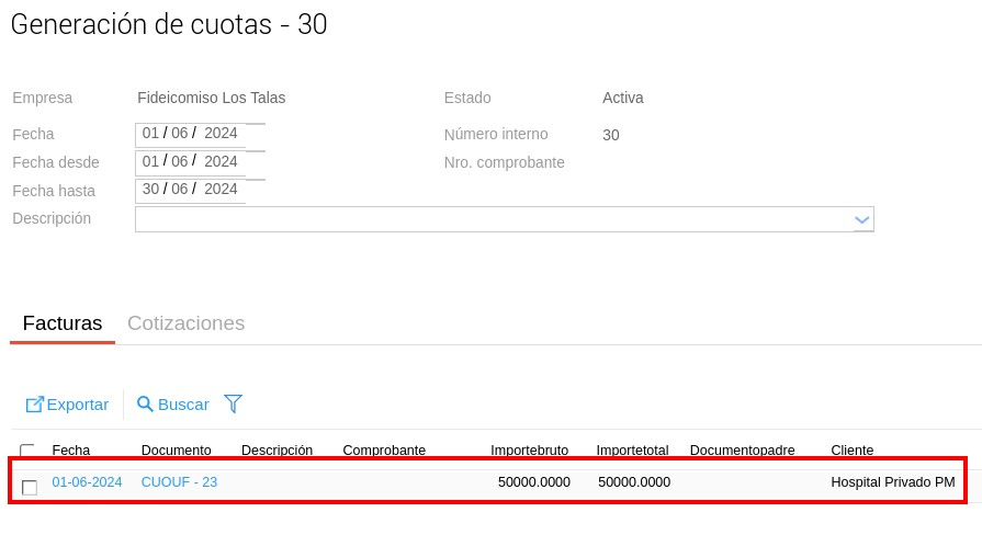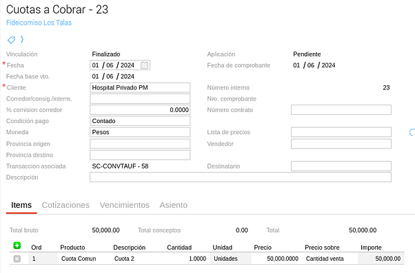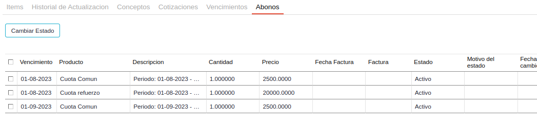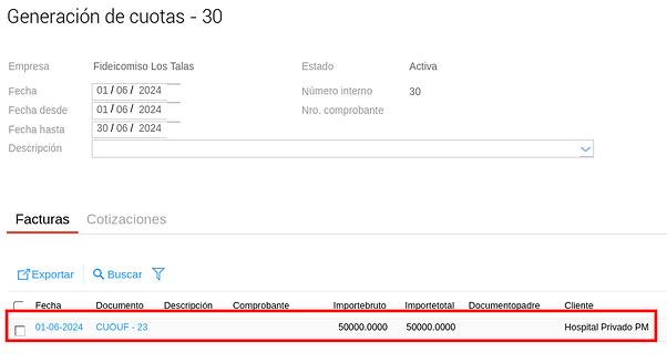 A continuación, se ven las cuotas generadas