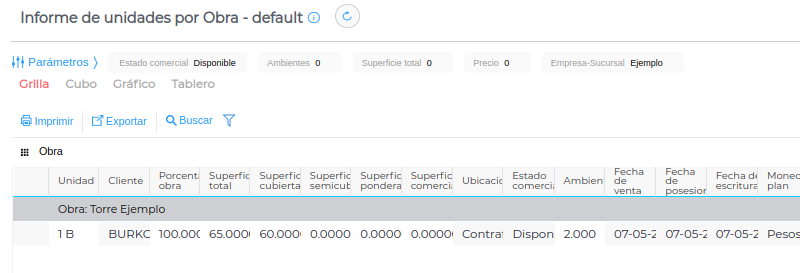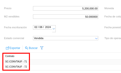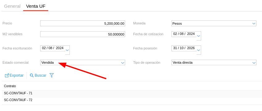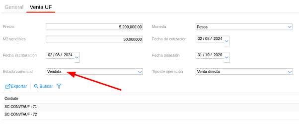 Si se vuelve a ingresar a la unidad funcional desde el plan vemos que una vez generado el contrato de venta, el estado comercial de la unidad cambió de “Disponible” a “Vendida”.