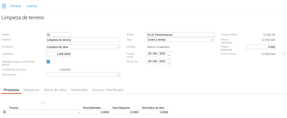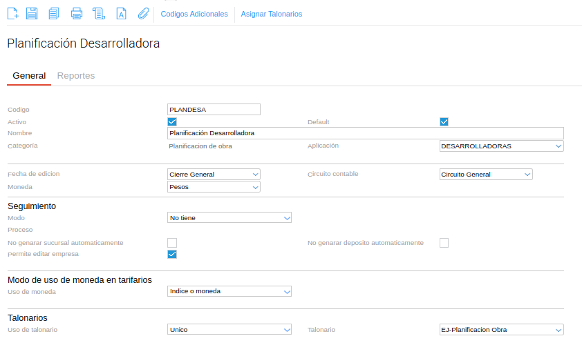 - Condición de pago: es la condición que el sistema va a tomar para la planificación de la obra.