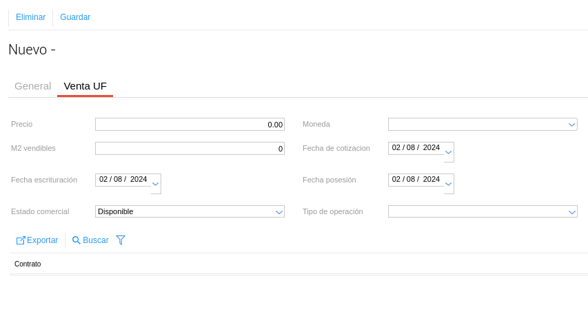 Se puede realizar la carga del mismo desde la prestación de contrato de venta unidad.