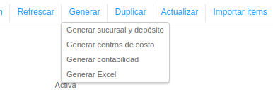 - Método de creación para centros de costo: se podrán generar los centros de costos, uno por cada ítem del presupuesto, o uno por cada rubro, o un único centro de costos con el nombre del presupuesto.