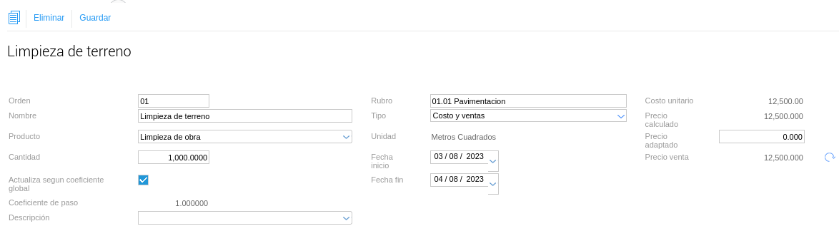 - Costo unitario: precio unitario * cantidad/unidad item.