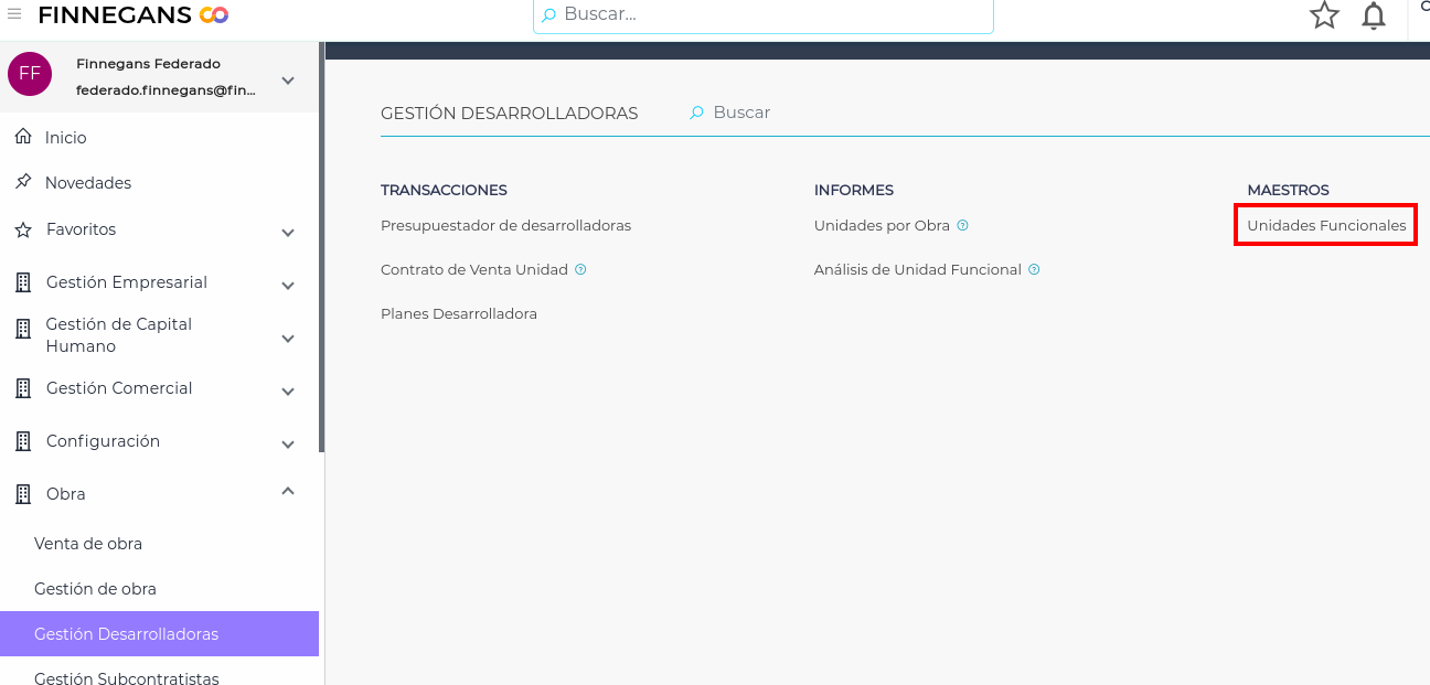 De la lista desplegable, se debe seleccionar la unidad funcional adecuada