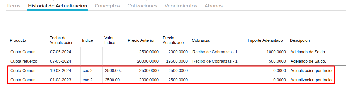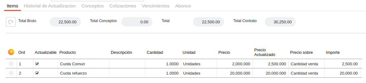 Al igual que al actualizar individualmente, en cada contrato se actualizarán los abonos que no se hayan facturado.