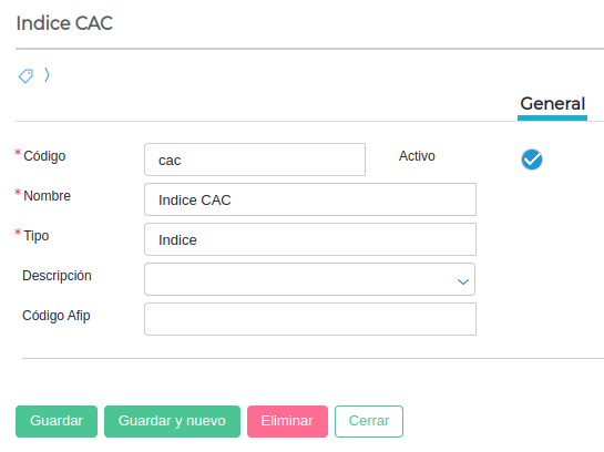 Luego en la solapa general, se tiene que completar obligatoriamente los siguientes campos: