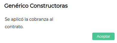 Desaplicada la cobranza satisfactoriamente, aparecerá el siguiente mensaje: