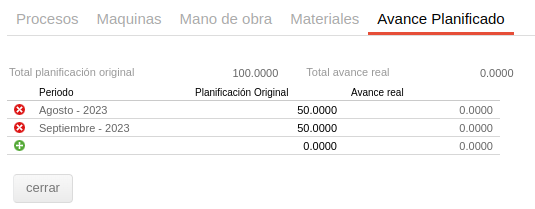 Se incluye también un totalizador que suma los porcentajes de planificación original y del avance real.