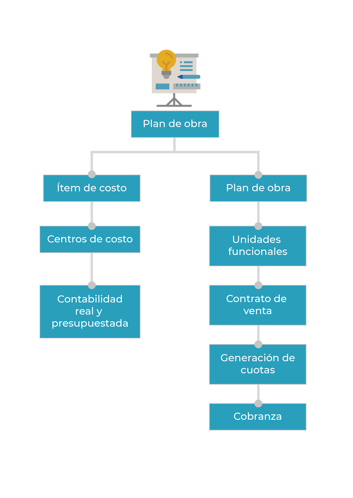 En el plan de obra de un proyecto inmobiliario se registran los costos del proyecto (que generarán los centros de costos) y las unidades a producir.