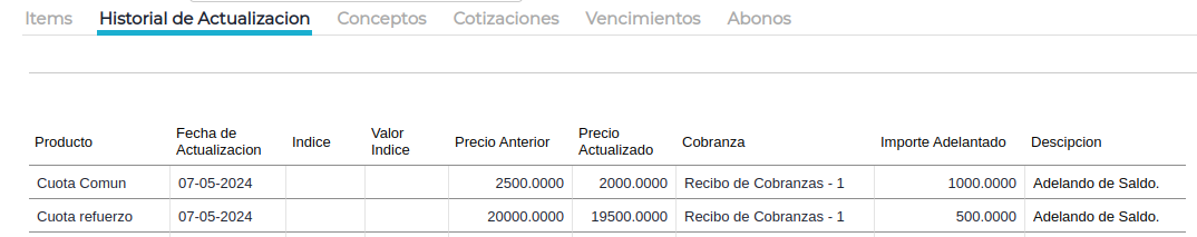 Inmediatamente, se van a actualizar los abonos que queden pendientes a pagar por el método de actualización que se haya seleccionado en el plan.