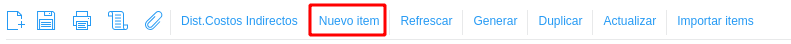 Para ingresar cada ítem se oprime el botón “Nuevo Ítem” en la barra de comandos y se abre el cuadro para ingresar el Ítem.