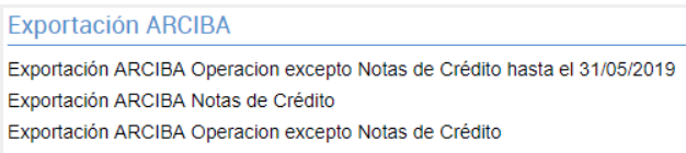 → Exportación ARCIBA Operación excepto Notas de Crédito hasta el 31/05/2019