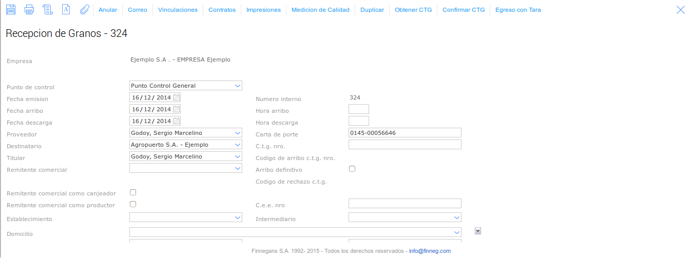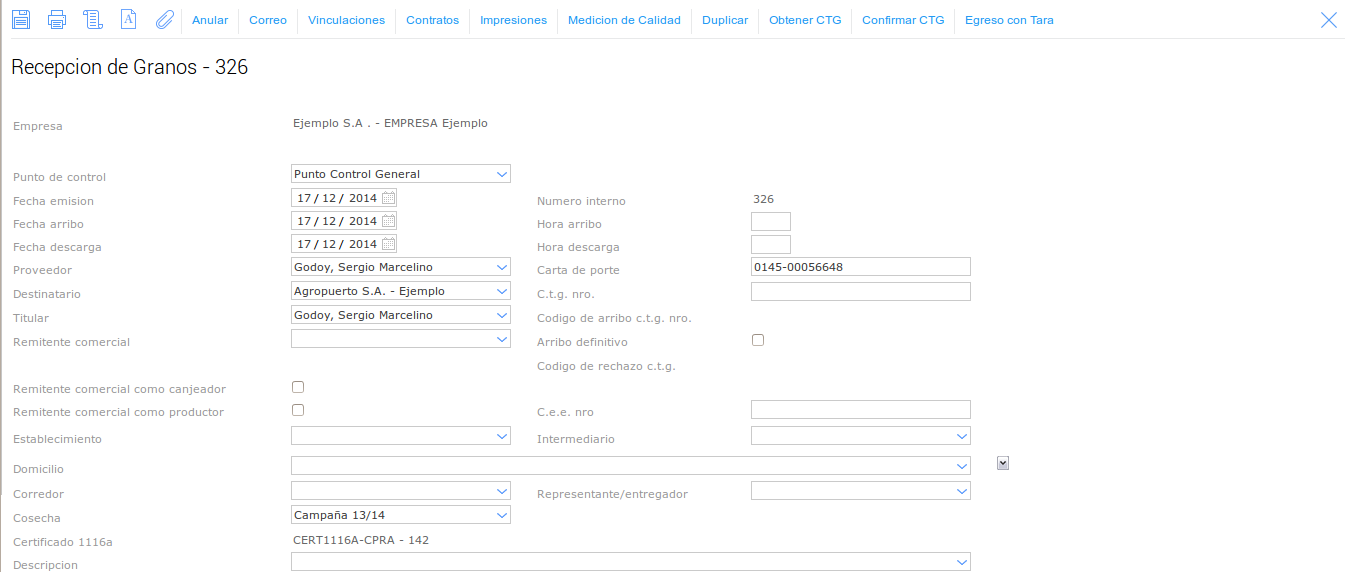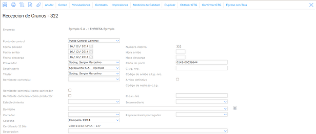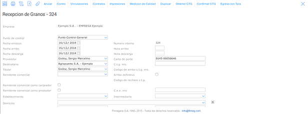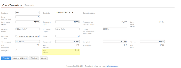 de la operación traslado de granos.