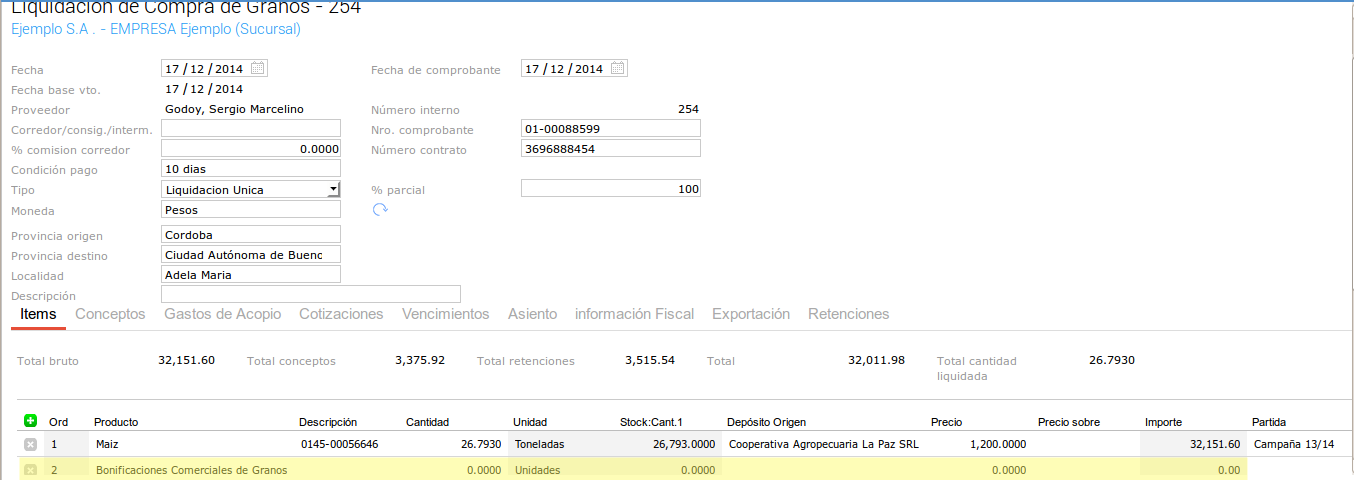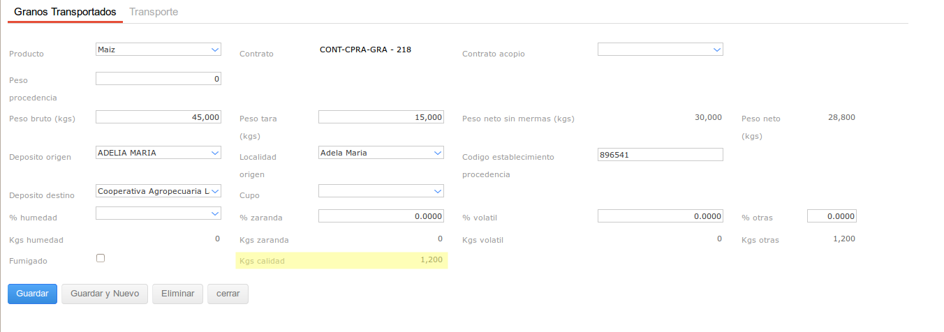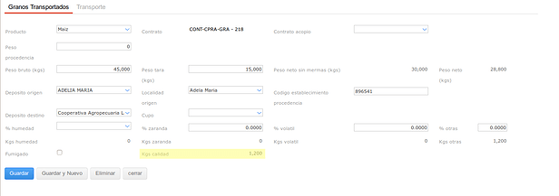 Y por último vamos a liquidar el Trasl. de Granos: