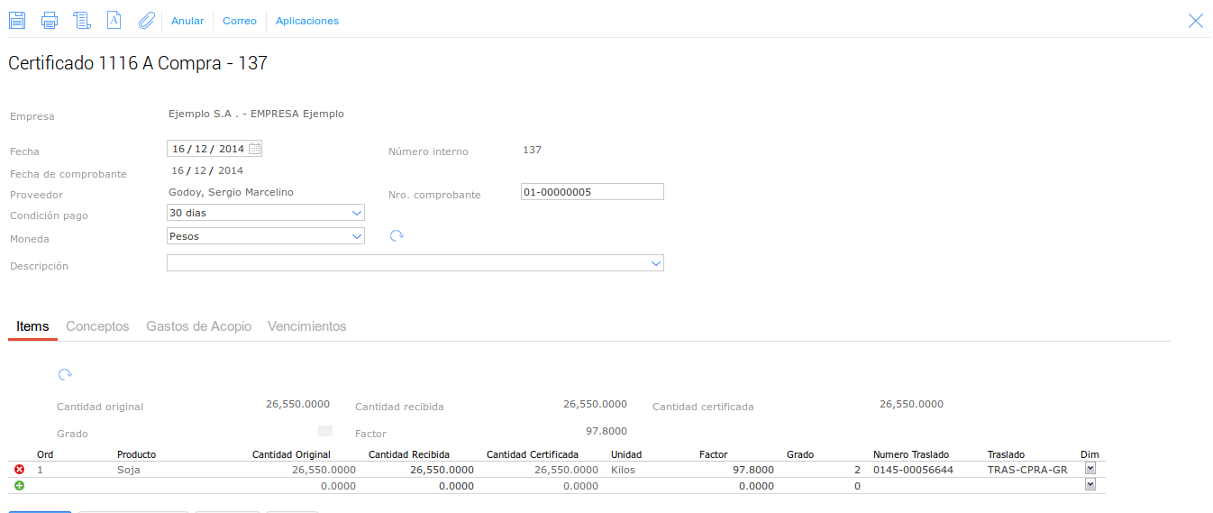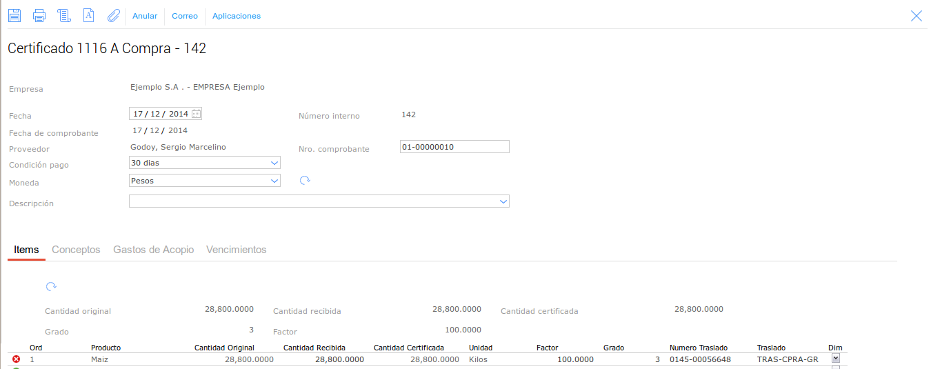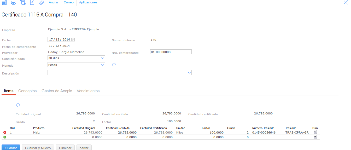 Luego debemos certificar este Trasl. de Granos