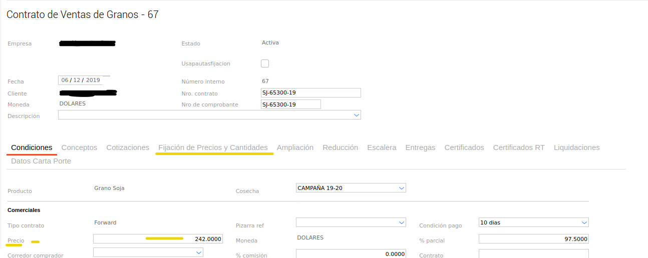Respuesta: El contrato que se quiere visualizar no tiene colocados ni el precio, ni la moneda. Falta completar la solapa de precios y fijaciones con estos datos.