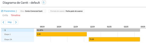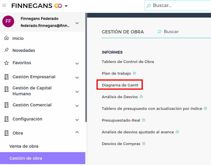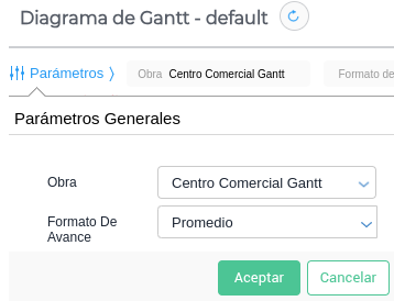 Para acceder a la view se ingresa desde Menú → Gestión de obra → Informes → Diagrama de Gantt